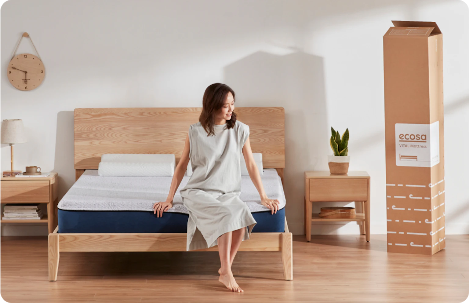 睡在你的Ecosa 床褥或枕頭(建議給予你的身體2至4星期的時間去適應)。